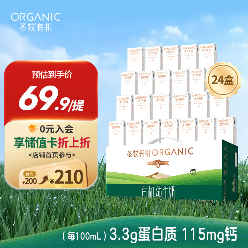 包邮 圣牧有机纯牛奶 品醇200ml*24盒 安全纯净 早餐奶 专注有机